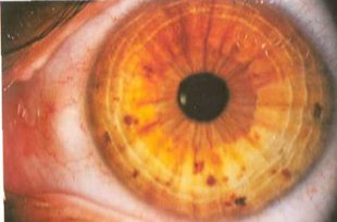 Узелки Лиша представляют собой бессимптомные гарматомы на радужке и